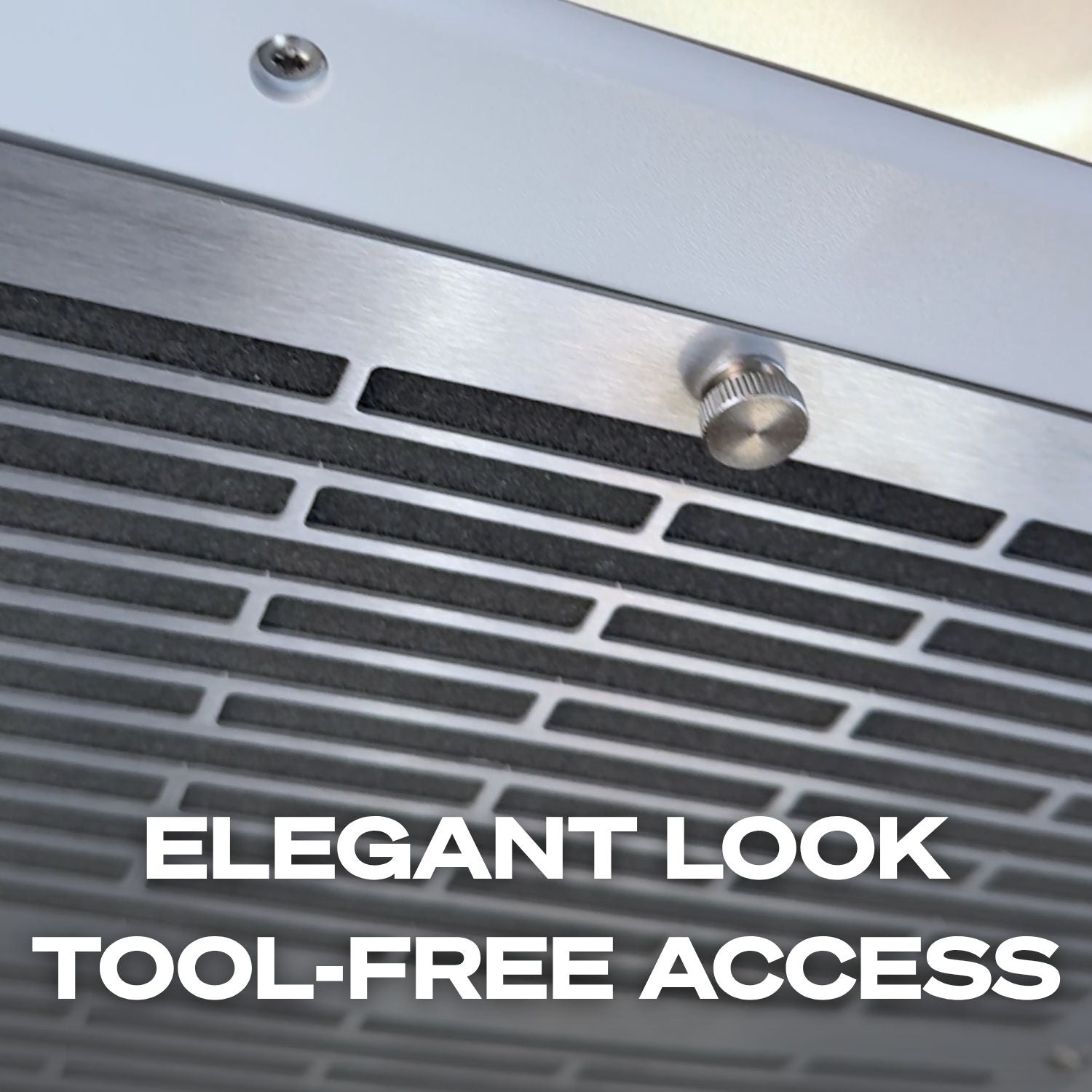 TOOL FREE FILTER ACCESS: Replace intake filters in seconds without grabbing a screwdriver, so routine maintenance actually happens. TRAVEL PROOF FRICTION: Each silicone washer adds grip between the thumbscrew and metal cover to resist vibration loosening while you tow. SCRATCH SAFE PROTECTION: The non marring washer prevents swirl marks and protects the brushed intake finish over repeated changes. STAINLESS BUILD, CLEAN LOOK: 304 stainless thumbscrews deliver corrosion resistance and a factory plus appearance that matches modern Airstream interiors. DROP IN COMPATIBILITY: Direct replacement for the factory screws on updated Airstream intake grilles, including GE Profile style intakes that use screw fasteners. WHAT’S INCLUDED: 4 stainless steel thumbscrews and 4 silicone washers.