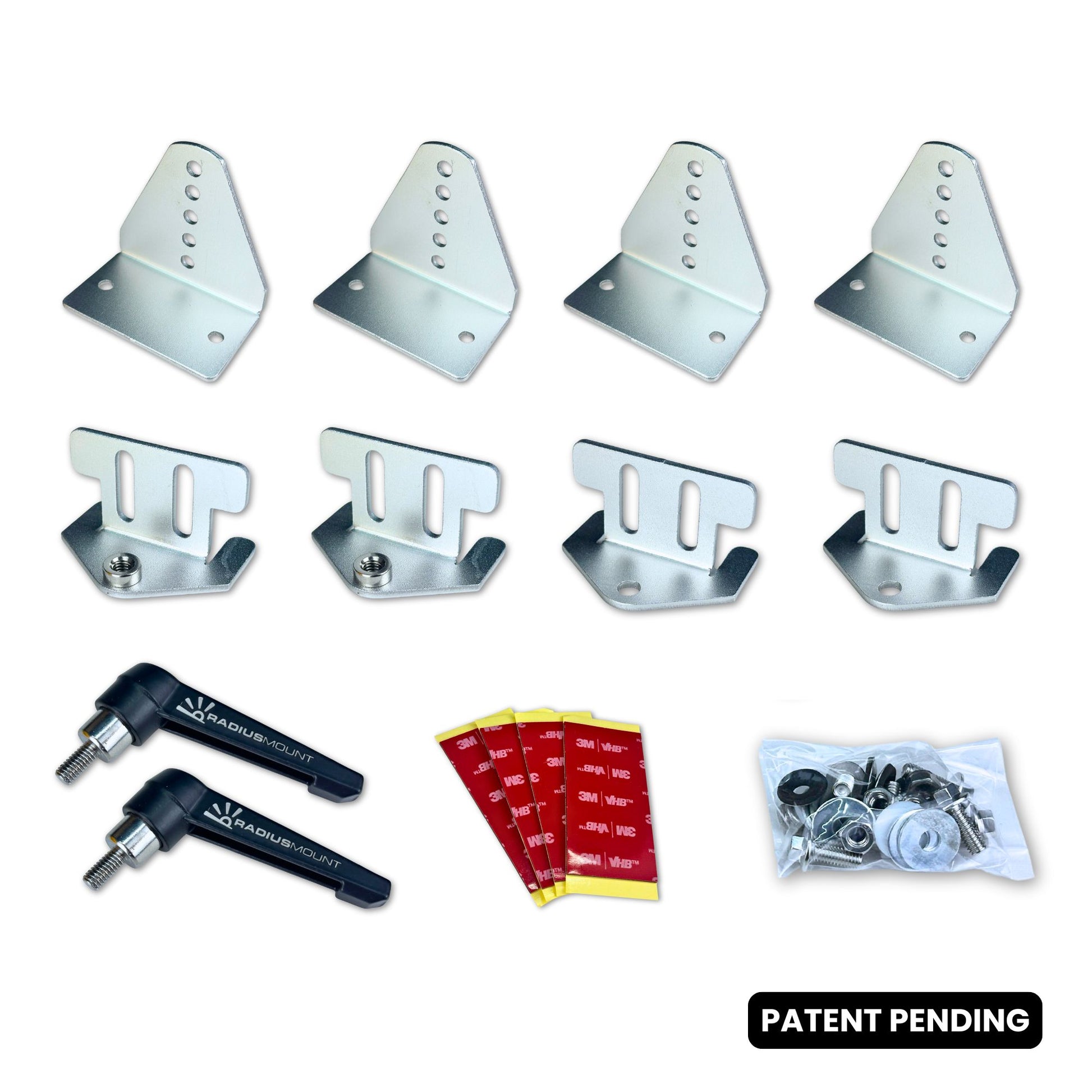 The Radius Mount™ system is a patent-pending, pivoting, drill-free solar panel mounting solution purpose-built for Airstreams and other RVs with curved roofs. Unlike traditional solar brackets that require permanent drilling and restricted roof access, Radius Mount uses high-strength VHB adhesive to secure each anodized aluminum bracket. This creates a strong, weatherproof bond without making holes in your roof.
